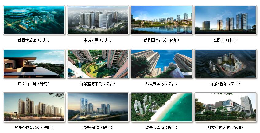 在主营的地产开发领域,多年来,绿景集团一直按照 "集团化、品牌化、专业化" 发展战略构思,积极实施 "做强深圳、聚焦珠三角、推进全国化" 的战略规划布局,以绿景花园、绿景新苑、绿景新洋房、绿景新美域、绿景蓝湾半岛、绿景中城天邑、凤凰山一号、NEO企业大道、绿景大公馆、绿景香颂、绿景公馆1866为代表,积极建设 "绿色价值体系"。产品涵盖了城市精品公寓、CBD都市综合体、纯山海别墅豪宅、国际商业购物中心、地标性超甲级国际商务建筑群、五星级酒店等物业类型,成功跻身深圳市房地产综合实力前六强、华南品牌企业前十强及中国房地产百强企业之列。